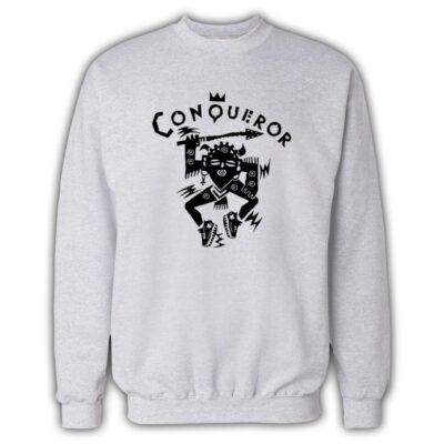 Conqueror Records record label logo in white available on a high quality sweatshirt in black, grey or white.